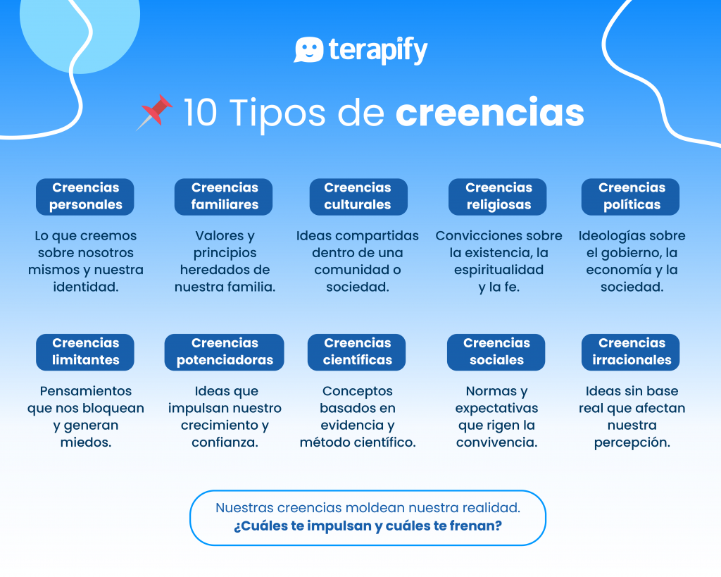 Las creencias son ideas o convicciones que consideramos verdaderas y que influyen en nuestra percepción del mundo y en nuestras decisiones diarias. Se forman a lo largo de nuestra vida a través de experiencias personales, aprendizajes y la influencia de nuestro entorno social y cultural.